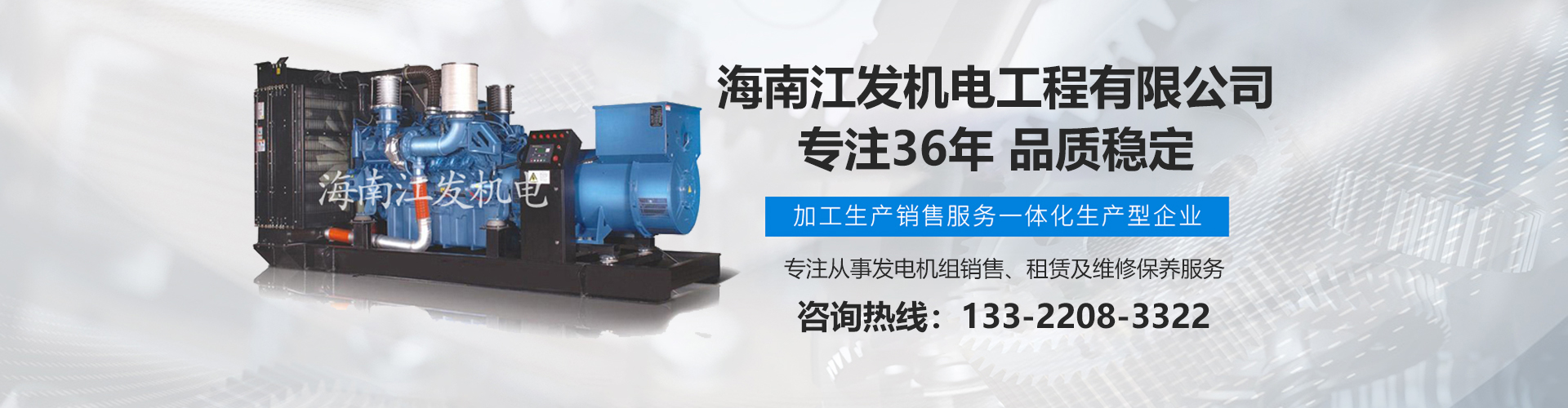 海南江發(fā)機(jī)電工程有限公司是海南經(jīng)營進(jìn)口、國產(chǎn)柴油發(fā)電機(jī)組、是海南較早、較大的銷售、租賃服務(wù)及維修保養(yǎng)專業(yè)機(jī)電公司。從1985年開始,公司勵精圖治、銳意進(jìn)取、不斷創(chuàng)新,不僅在海南機(jī)電行業(yè)領(lǐng)域中具有先進(jìn)技術(shù)、完美管理、誠信服務(wù),高超的產(chǎn)品質(zhì)量和性能,而且還有合理的產(chǎn)品性能價(jià)格比,令客戶滿意以及完善的支持保障。 在客戶心目中,江發(fā)公司不僅具有最好的企業(yè)信譽(yù),還是客戶最信賴的誠信單位,而且會帶給客戶永遠(yuǎn)的光明和豐厚回報(bào)。